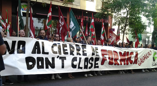 Hoy viernes 21 de septiembre las y los trabajadores de Formica se han concentrado frente a la embajada de Nueva Zelanda en Madrid, para entregar un comunicado al área mercantil de la misma solicitando, que como accionista de la multinacional FLETCHER BUILDING (propietaria de Formica), haga lo que le corresponda para que no se cierre la planta de Galdakao.