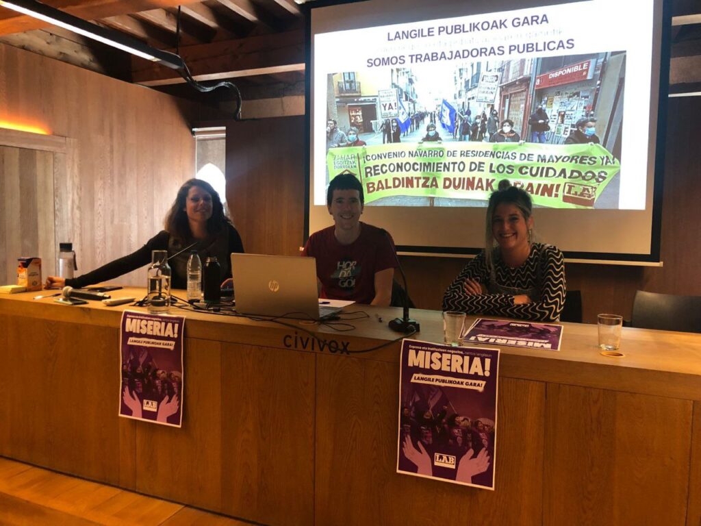 Gaur LABek Hego Euskal Herriko herrialde guztietan zaintza sektoreko ordezkari guztiekin asanbladak eta mobilizazioak egin ditu. Langile publiko gisa aitortza exijitu dugu kalerik kale, eta pribatizazioari ateak itxi behar zaizkiola oihukatu dugu.