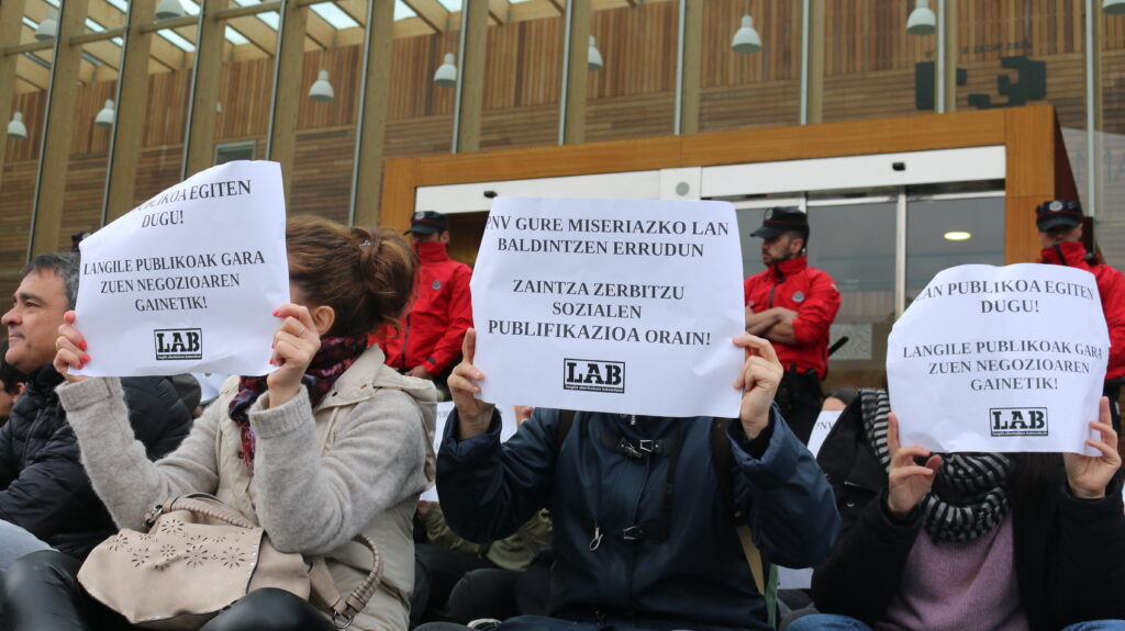 Sektore publikoak ez ditu zaintza zerbitzuak bermatzen eta instituzioek ez dute euren gain hartzen kudeaketa zuzena, botere kuota edota diru etekina lehenesten duten patronal eta enpresen esku uzten dituzte, langileen gure eta bizi baldintzen eta erabiltzaileen zainduak izateko eskubidearen gainetik. EAJk bultzatzen duen pribatizazioak eragin zuzena dauka zaintza zerbitzu sozialeko langileengan, eta honako ondorioak dakartza: prekaritatea, esplotazioa, partzialtasuna, lan karga jasangaitzak, lan osasun neurri eza, kontziliazio neurri eza…