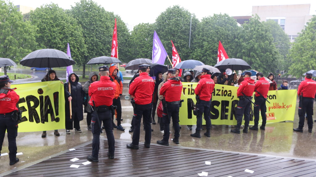 Gaur Hirugarren Sektore Sozialaren Eguna ospatu da Donostian, EHU/UPVren Karlos Santamaria Zentroan. Bertan, euskal erakunde sozialek, instituzioetako ordezkariek, politikariek eta zaintza sektoreko hainbat patronalek hartu dute parte. Honen aurrean, mobilizazioa egin dugu zaintza zerbitzu sozialen pribatizazioa salatzeko.