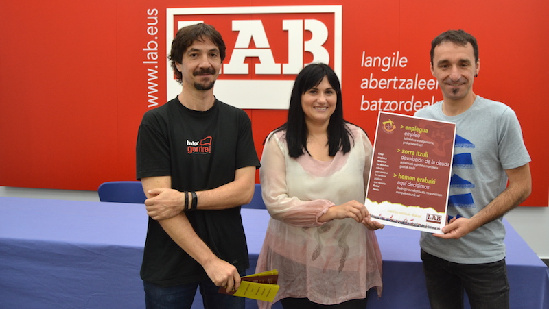 Gorka Berasategik, Eider Casanovak eta Jon Otegik, LABeko Zerbitzu Publikoen Federazioko arduradunek, prentsaurrekoa eman dute gaur, sektore publikoan negoziazio kolektiboaren esparrua bizi den egoeraren berri emateko.