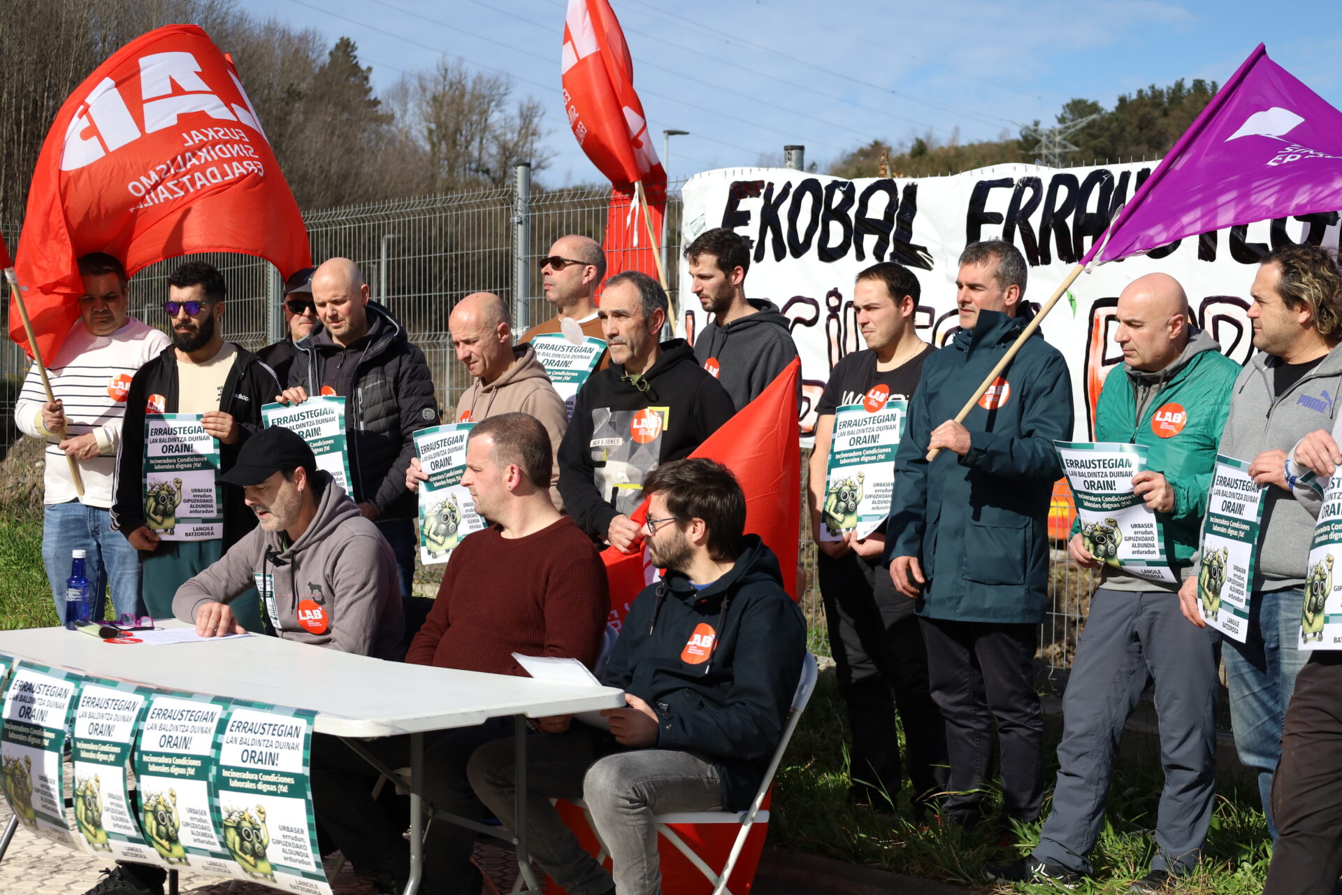 Erraustegiko langileok arautu gabeko txandakotasun, arrisku eta toxikotasun handia daukan ingurune batean lan egiten dugu eta babestu eta ordaindu gabeko baldintzak ditugu. Enpresak 12 ordura arteko lanaldi jarraituak egitera behartzen gaitu jada gure osasunerako kaltegarria den 24/7 txanda sistemako langileoi, aurreko edo hurrengo txandako lankideak lanera ezin badira etorri, Non Stop zerbitzua bermatuz langileen osasunaren kontura. Bestalde, mantentze lanetako langileoi asteburuetan erretén-zerbitzua egitera ere behartzen gaitu enpresak, arautu eta ordaindu gabeko zerbitzu eta prestasuna ezarriz. Hori gutxi balitz, EKOBAL enpresak zaborrarekin zuzenean lan egiten dugun langileoi egunero jasaten dugun benetako arrisku biologikoa ez digu ez aitortzen ezta saritzen ere.